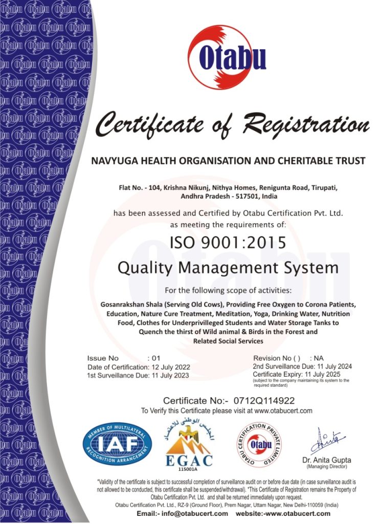 To prevent the sinful act of killing cows or sending cows to slaughterhouses, as a small step in the protection of cows and to provide shelter to old and unproductive cows, this service Organisation has set up a “Navayuga Health Organisation and Charitable Trust.